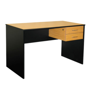 ESCRITORIO RECTO CON CAJON, MEDIDA 1.20 MT LARGO, 0.60 MTS PROFUNDIDAD, 0.75 MTS ALTURA, ELABORADO DE TRIPLAY DE PINO DE 18MM ACABADO CON LAMINADO PLASTICO COLOR CEREZO Y NEGRO